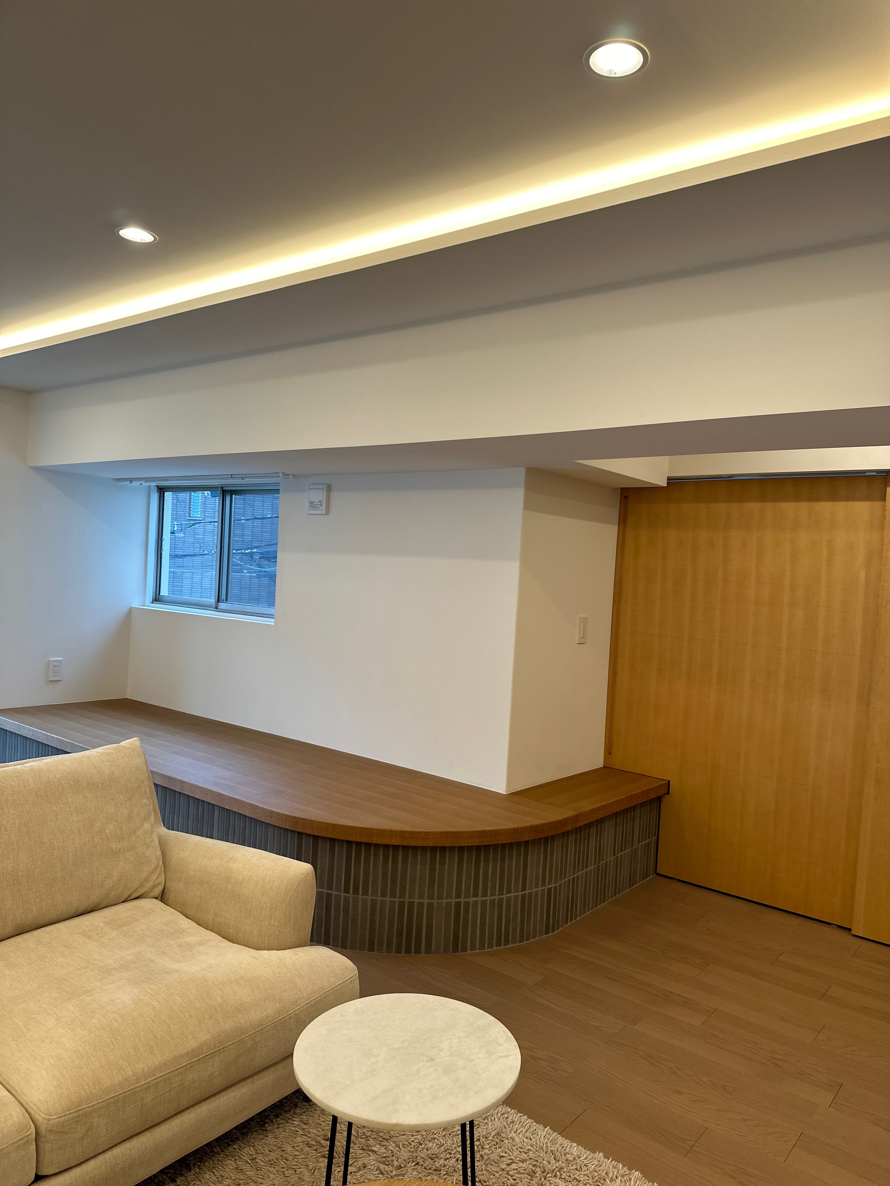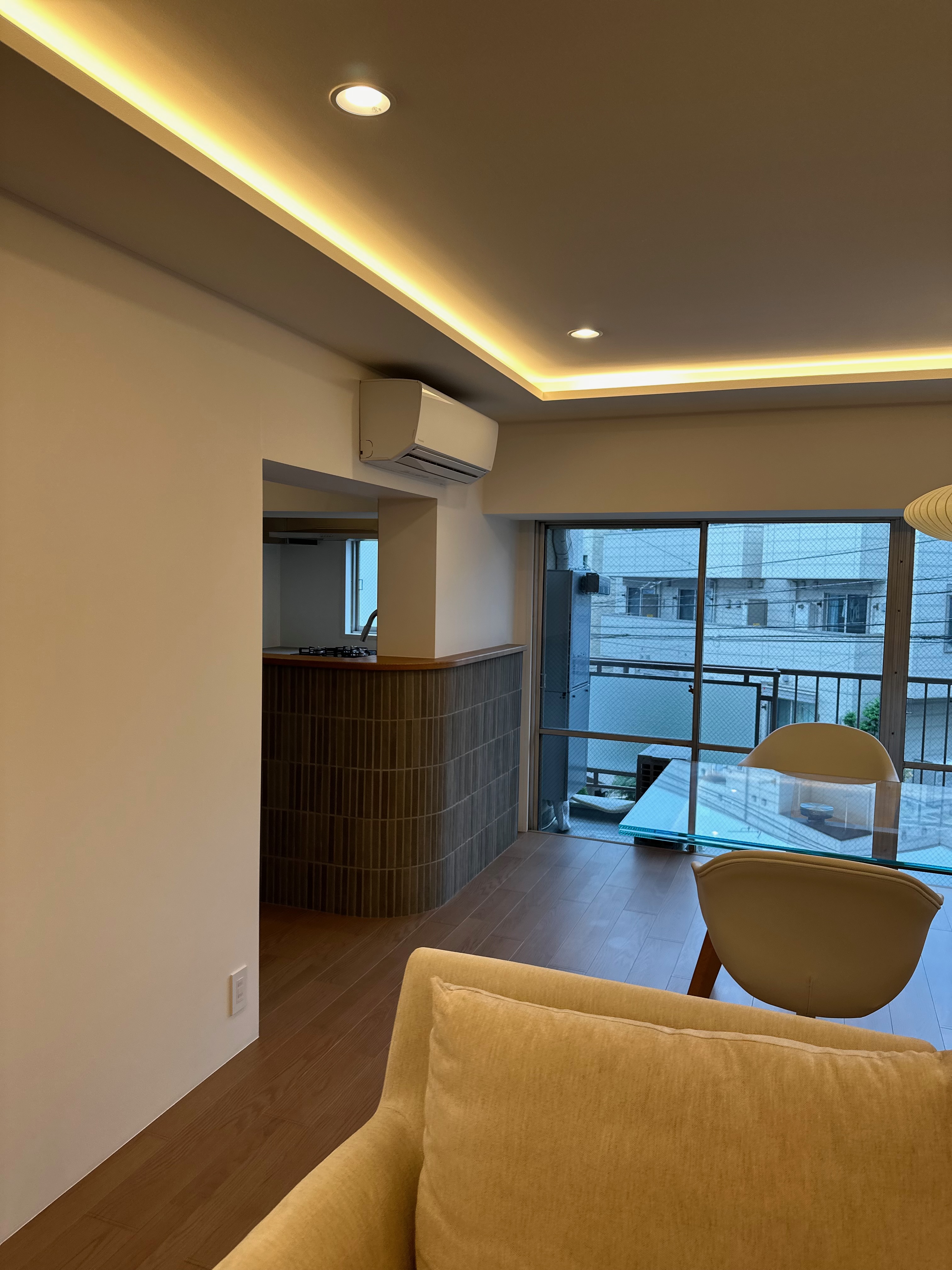 東京都代々木に位置する150㎡のマンションを、家族のライフスタイルに合わせて全面的にリノベーション。既存の構造を活かしつつ、自然光が差し込む開放的なリビングと、素材の質感を大切にした内装を実現しました。無垢材のフローリングや左官仕上げの壁が、住まいに温もりと落ち着きをもたらしています。家族の暮らしに寄り添う、静けさと快適さを兼ね備えた空間です。