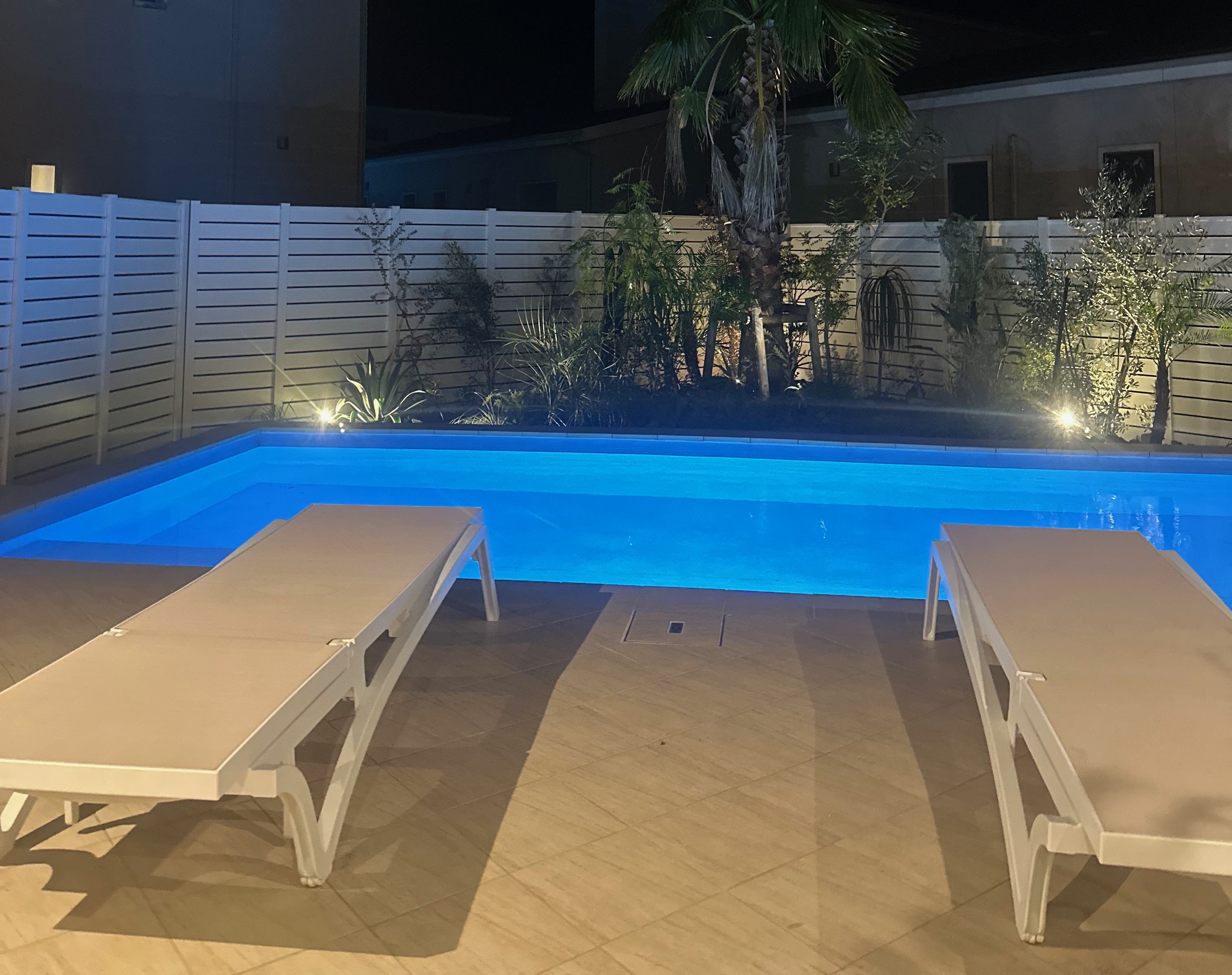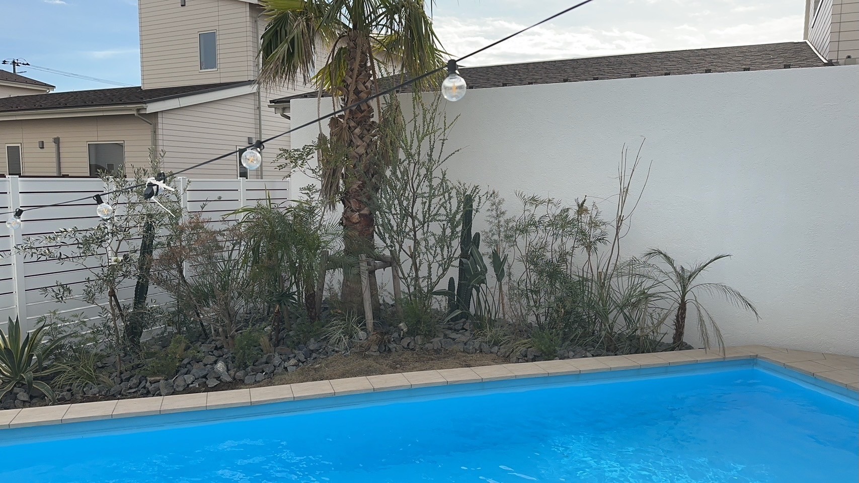 ウェディングフォトの背景となる外構として、非日常感と静けさを両立する空間を設計。