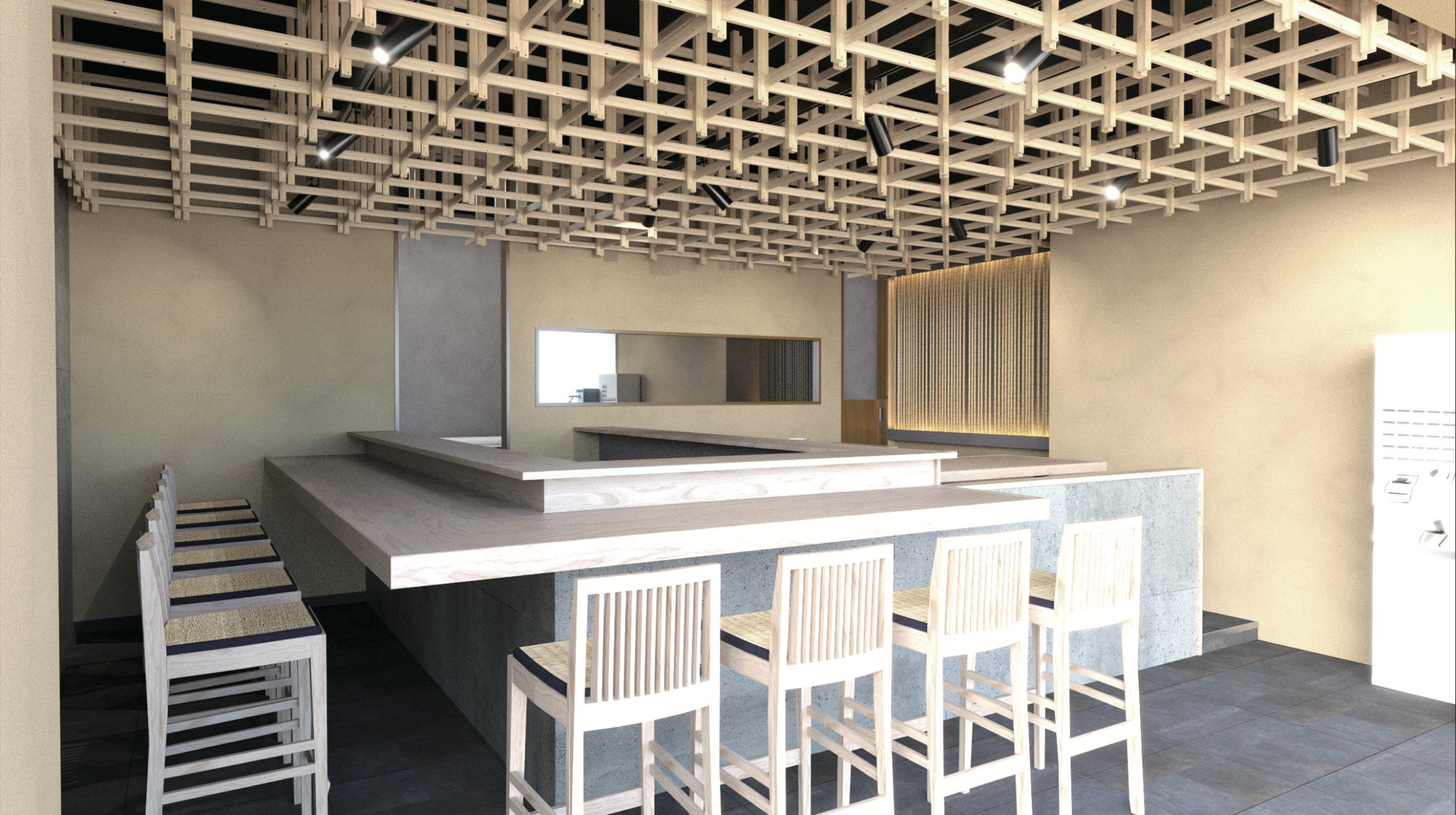 豊洲に新規開業したマグロラーメン店の内装設計・施工を担当しました。海の素材をテーマに、木材や石材を組み合わせたデザインで、温もりと清潔感を演出。カウンター席やテーブル席の配置に工夫を凝らし、限られたスペースでも快適に過ごせるよう配慮しました。照明計画にもこだわり、料理が美味しく見える光の演出を施しています。