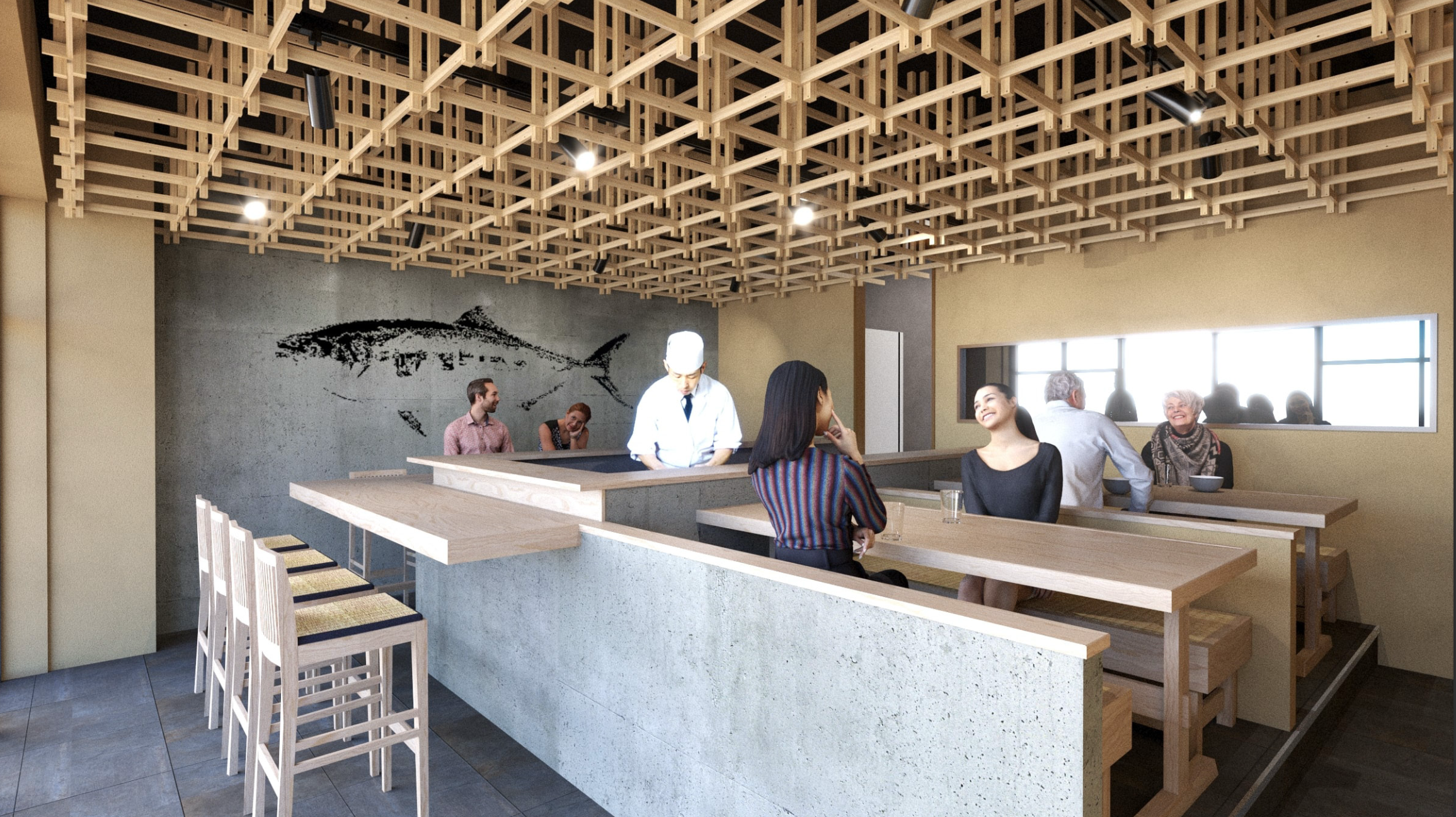 「料理の主役であるマグロに敬意を払い、設計でも“魚”を空間の中心に据えました。
